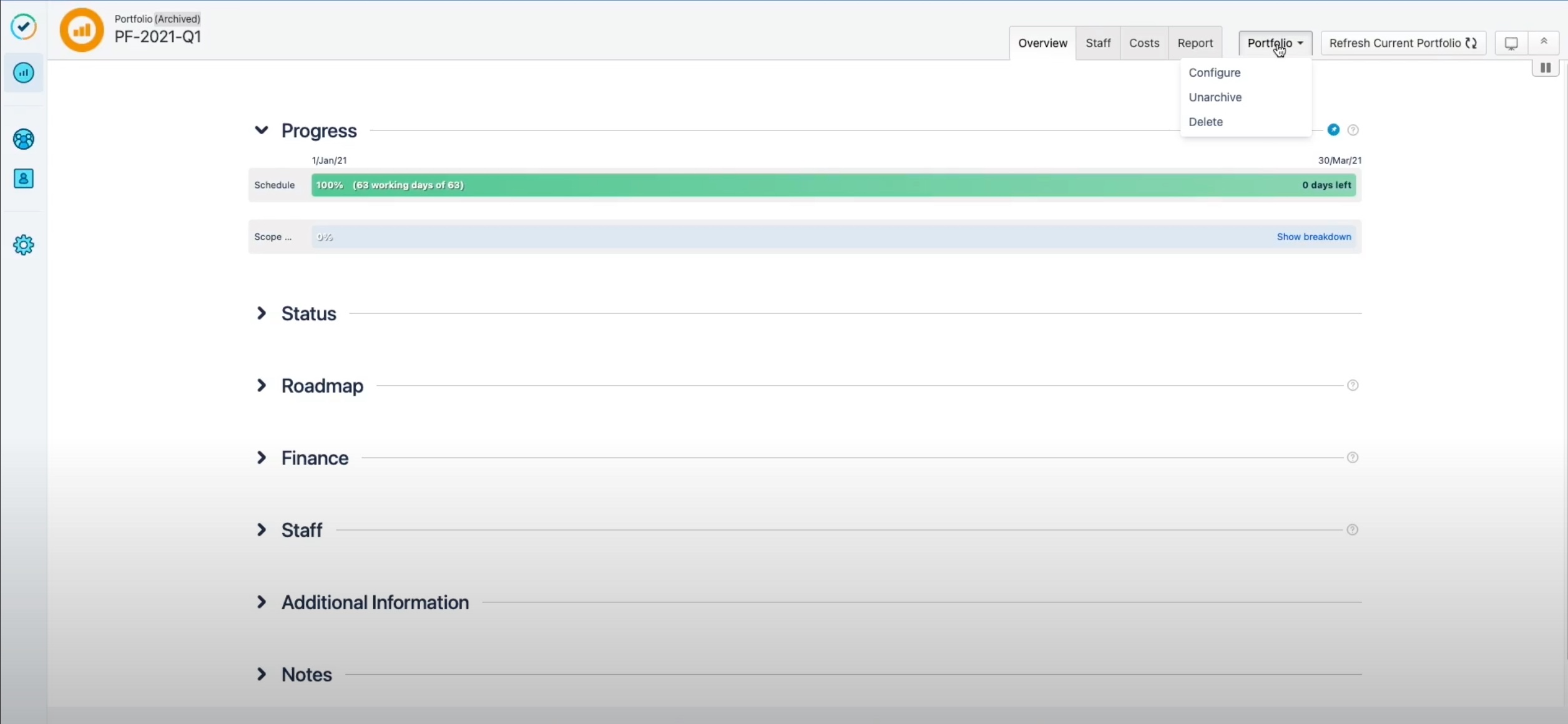 - To archive sub-portfolios, click the portfolio to expand it and archive one sub-portfolio at a time.