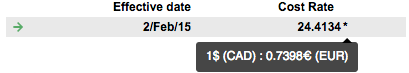 Date at which this cost rate becomes effective. The cost rate remains effective until the next one becomes effective or until the Folio's end date if no other cost rate is defined for the member in this Folio. If a cost rate is currently effective, it is shown in bold in the table and an arrow (