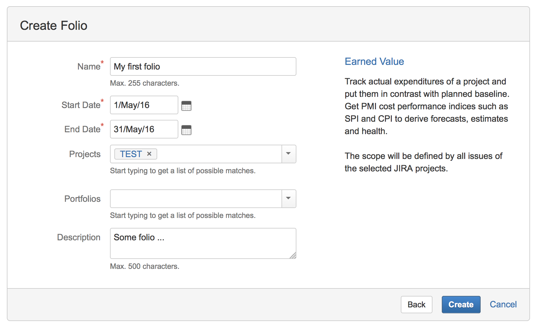 Select this option for example if you are evaluating or want to demonstrate Folio with mock data. This allows you to safely explore Tempo Budgets's features by creating a JIRA project and an associated Folio as it would be while in progress. Please refer to the Sample project page for more information.