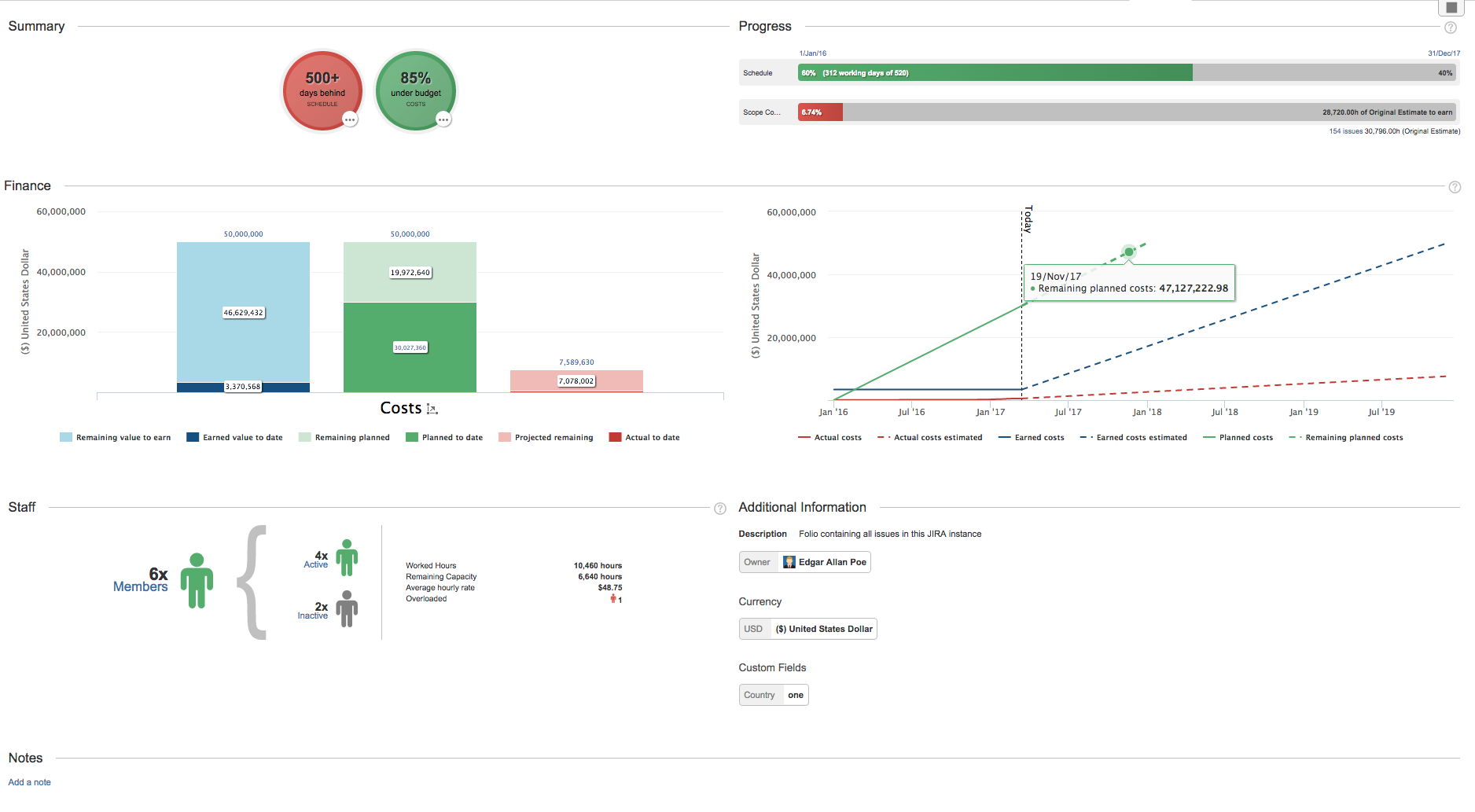 Note: The Scope progress becomes red if lower or equal than the Schedule progress.