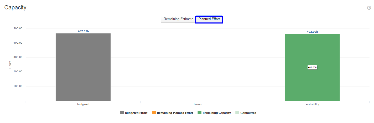 It also displays a Capacity chart that compares the total budgeted effort with either: