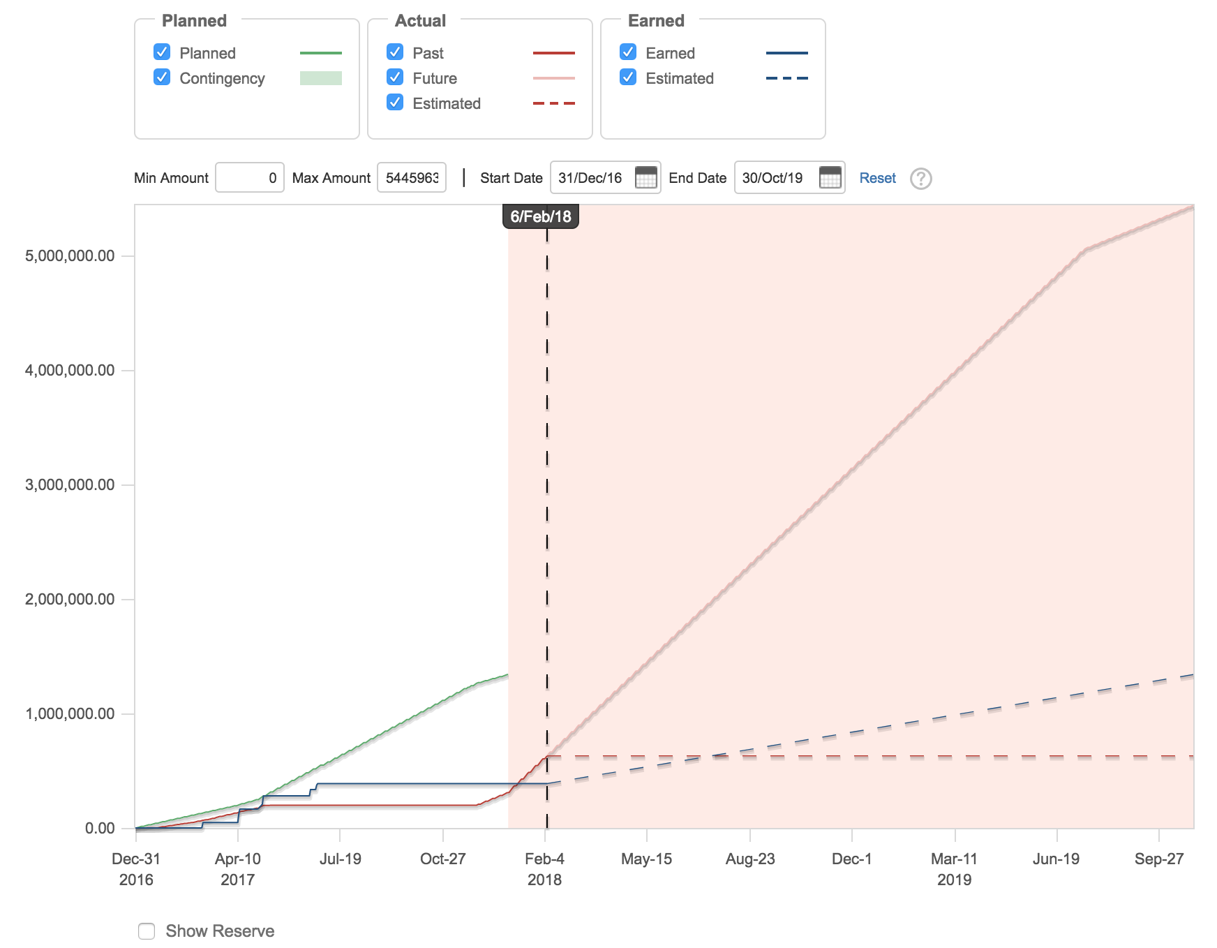 The Forecast Report presents cost, revenues and time projections based on the known data and performance as of today. You can generate the report for planned, actual, and earned projections. You can also generate a print-preview of your report in its current state from the action menu (...) or by pressing the "p" key, and then print from your browser.