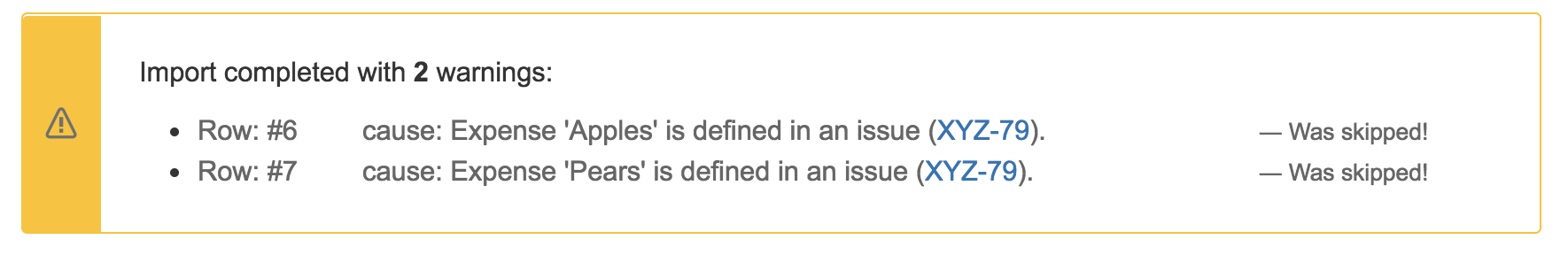 When exporting actual costs as CSV, issue expenses are included along and marked with the issue key in column "Issue". Note though that when importing CSV exported actual expenses, then issue expenses are skipped as they will implicitly show up in any folio that include the related issues. If any such issue expense is present in an imported file, a skip notification will appear in the import report including a link to the related issue.