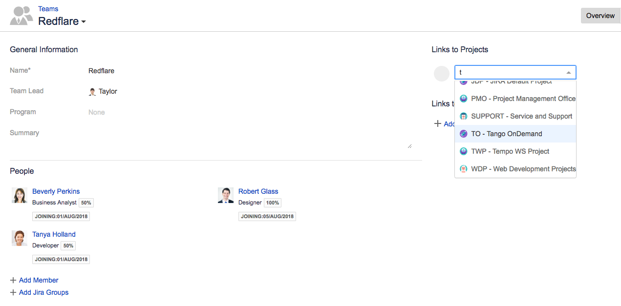 In this tutorial, you will create a team, link projects to it, plan the team’s time, and finally monitor the team’s capacity. You need Capacity Planner by Tempo to complete this task.