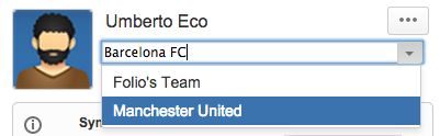 If a Folio uses more than one Tempo Teams and the same person is part of more than one of them, then the linked team member in Folio will be synced by default with the member of the first added Tempo Team. In this case, when the member is selected, a star is displayed next to its team's name in the team member summary (just below its name). You can change the Tempo Team with which the team member is synchronized by selecting it, then clicking on its team name, and then selecting another one.