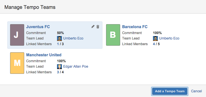 Added members are linked to the corresponding Tempo Team members: the availability, current role, holiday and workload schemes are kept in sync and modifiable only in the Tempo Team.