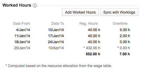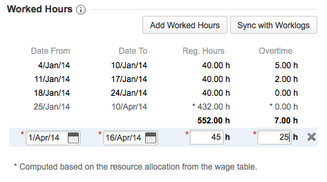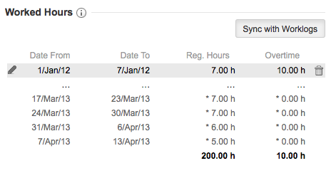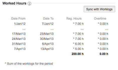 In the case where the worked hours are based on the JIRA worklogs, only the number of worked hours and overtime hours can be updated. Work periods are fixed and are weekly based.