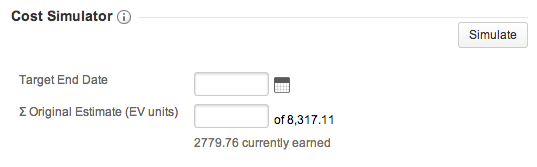 [Available for Costs only] The Cost Simulator allows you to perform some simulations in order to get estimates, for instance, on the staff count that would be required to attain a certain Earned Value.