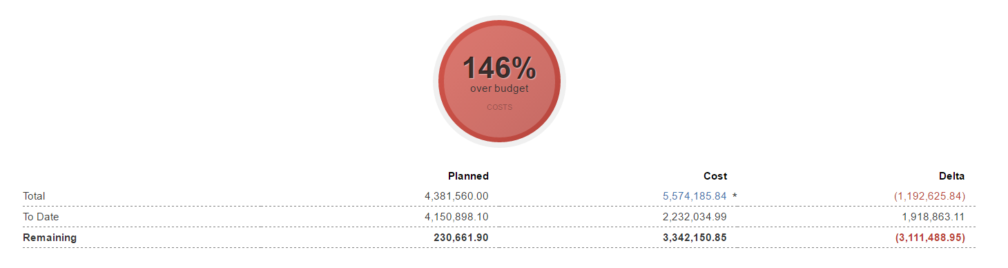 ![]() | Estimated | Future estimated costs based on the Cost Performance Index (see Health section of the Folio's Overview). |