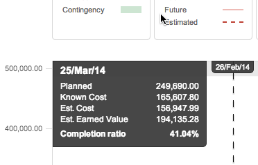 ![]() | Estimated | [EVM only] Future estimated Earned Value based on the Schedule Performance Index (see Health section of the Folio's Overview). |