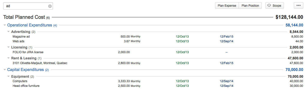 Most information browsing screens in Tempo Budgets have a search box allowing you to find elements within that screen. Information browsing screens with search include: