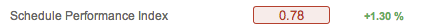 The report shows that the Schedule Performance index has increased by 1.30% between the two compared dates. Even though the SPI of 0.78 is still considered bad (as indicated by the red background), the index variation indicates an improvement (show in green) since the index has moved towards the its optimal value (positive infinity).