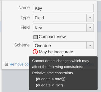 When the column detects that the selected color scheme may result in colors not being updated if issues are not modified, it shows the "May be inaccurate" warning.