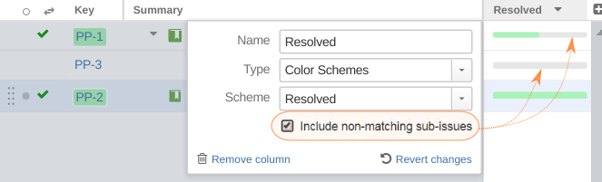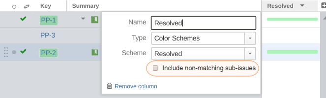 The Include non-matching sub-issues checkbox allows the user to control how issues that do not match any coloring rule are counted.