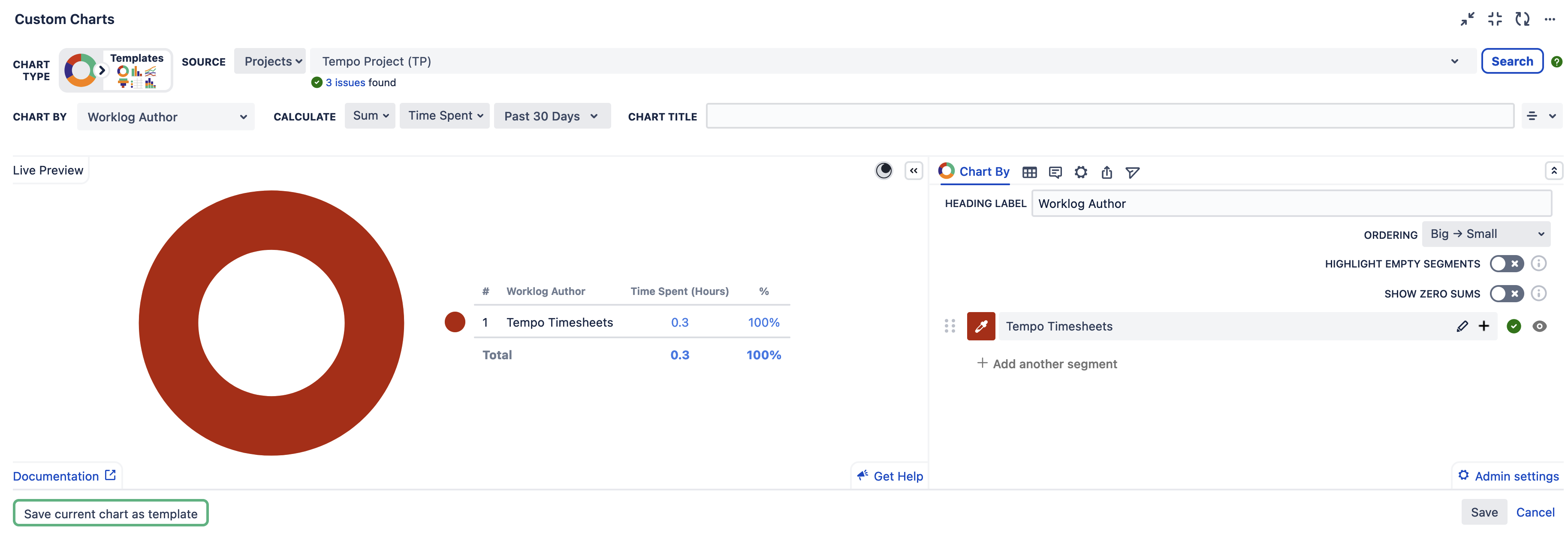 Custom Charts now integrates with Timesheets by Tempo, which allows teams to log and track time spent working on Jira issues.