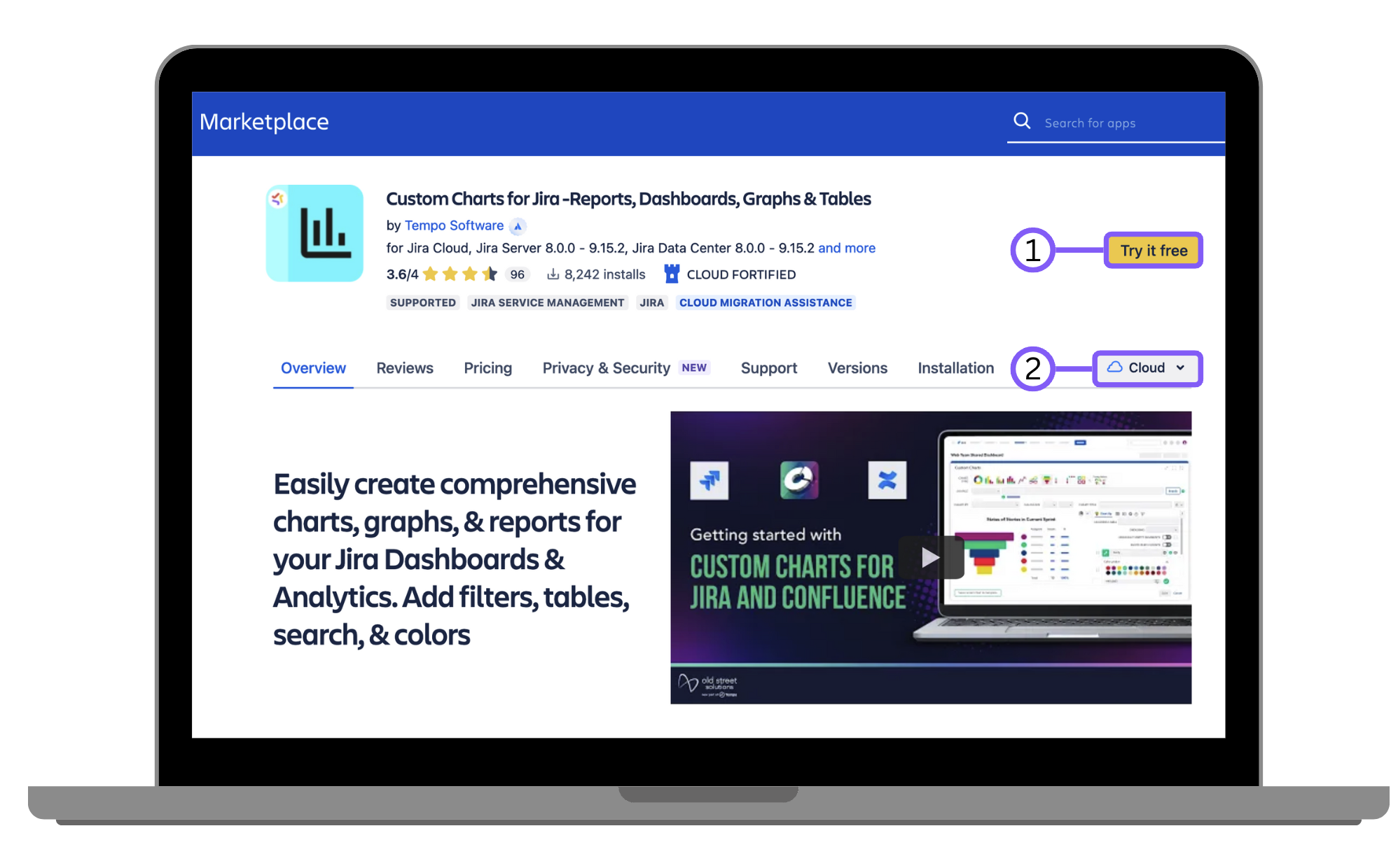 Go to the Custom Charts marketplace listing and choose your desired hosting type