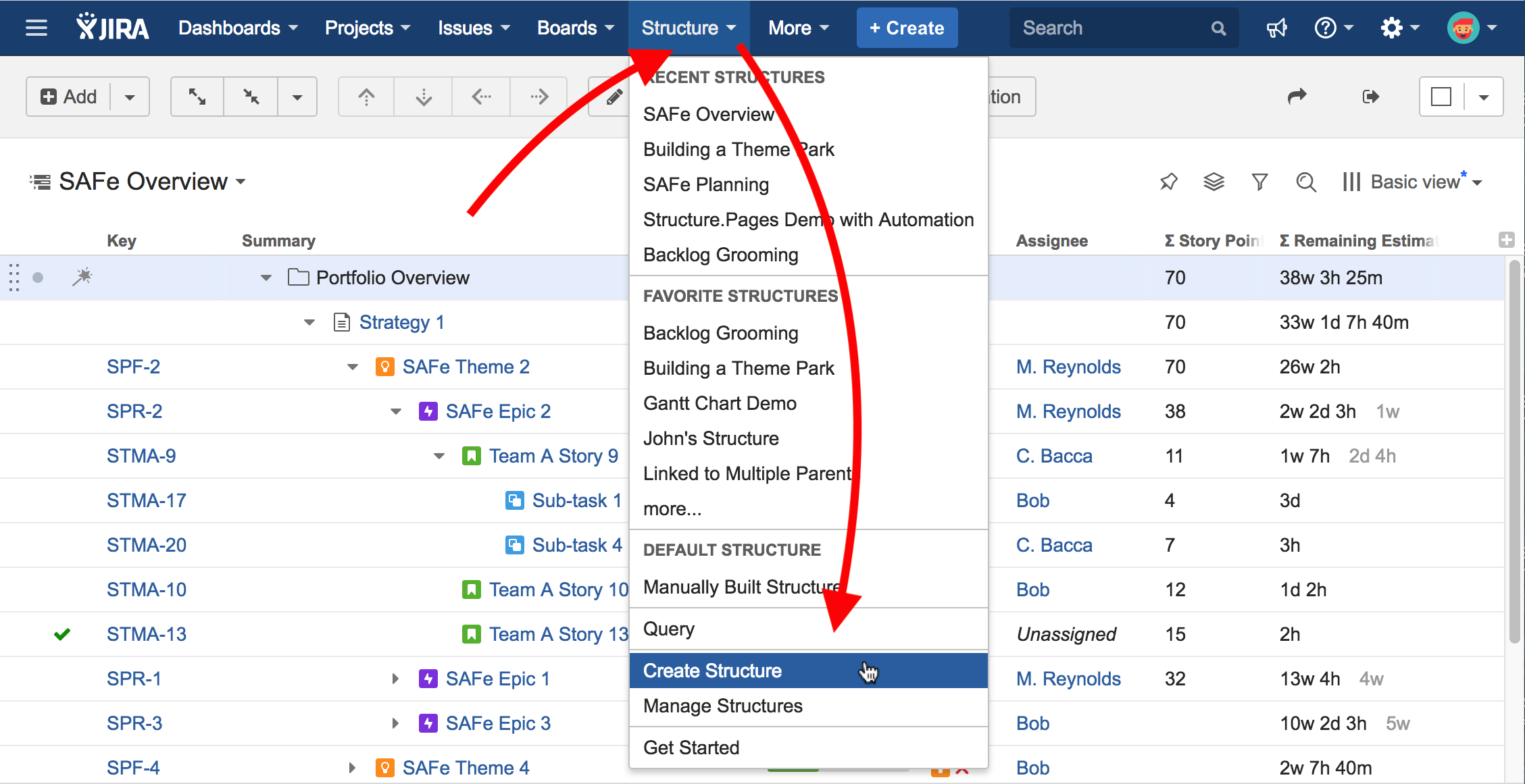 Once you've selected your options, click the Create Structure and Gantt chart button. Your new chart will be constructed using Structure's powerful Automation feature. If you need to make changes to the issues included in your chart or how they are arranged, you can edit the automation rules later.