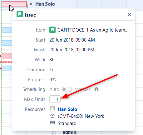 - To learn about setting the default Maximum Units value, see Gantt Configuration | Resources.