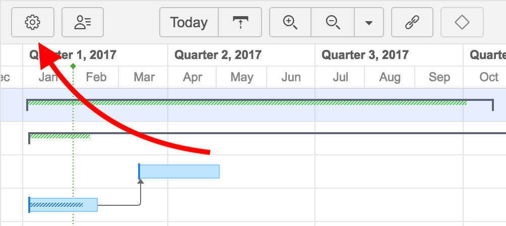 You can customize Gantt configuration during your initial chart setup or (if you are already working with your chart) by clicking the Settings button in the chart toolbar.