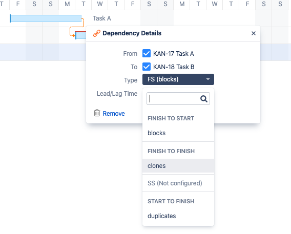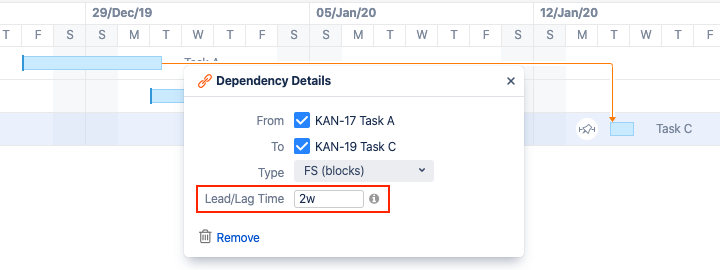Dependency Lead/Lag times can be applied to individual issues, tailored for specific types of issues using Slices, or set globally through the Gantt configuration.