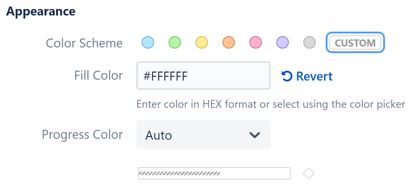 Fill Color - Enter a custom color, either using the color picker or typing its Hex value.