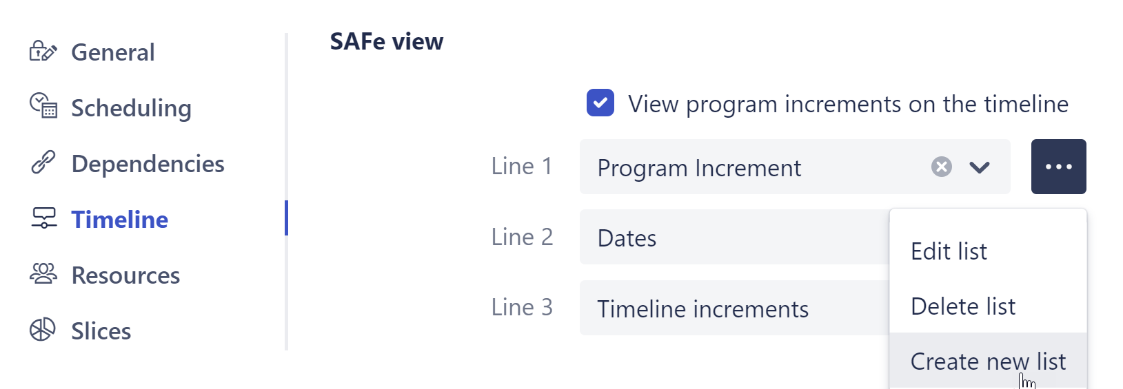 SAFe view allows you to customize your timeline header to fit your team's planning methods: