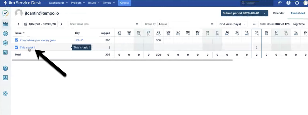 The Tempo Logged Time Report referencing before Archive project