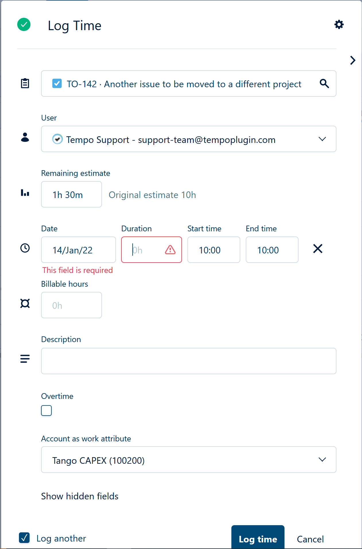 Open Log Time form in any view or by pressing the "w" shortcut