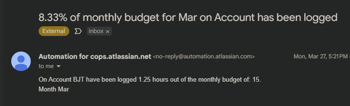 In the Professional Service Industry it is very common to deal with negotiated time buckets between the service provider and customer. The Service provider needs to make sure to deliver the content but also needs to make sure to not extend the time budget agreed on. You (or your service manager) want to get notified when the time spent has reached a certain threshold (e.g. 75 or 90% of the negotiated budget). By leveraging Tempo Accounts and Automation for Jira you could achieve that and we show you how. The tutorial is guiding you through one scenario but you want or need to adapt according to your needs.