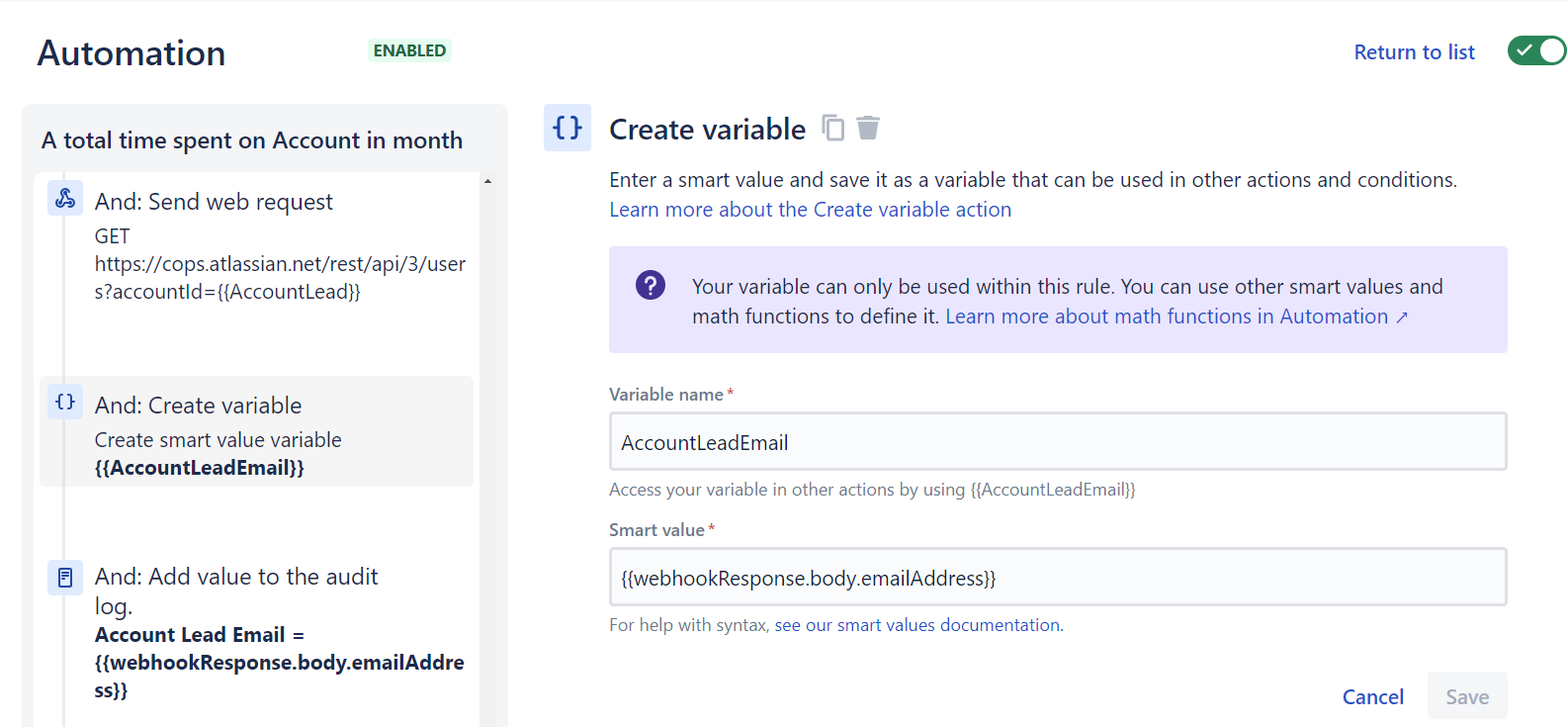 Additionally, we can grab the Account Lead’s Atlassian ID to send the email notification to that person.