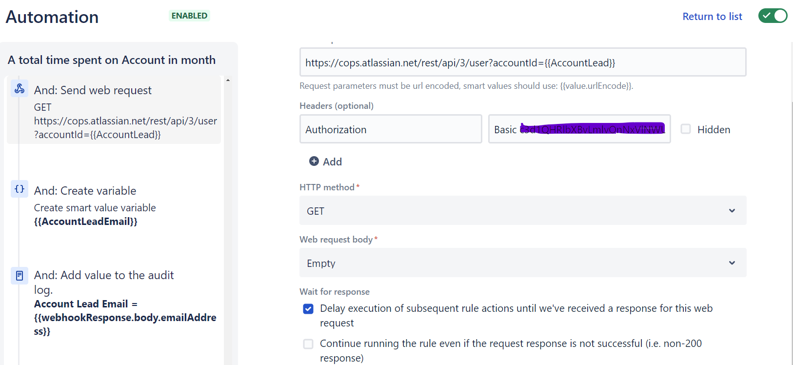 Now we have gathered all the info through this automation. We need to get the Account Lead’s email address(es) to send out notification with the variable {{AccountLead}} by using this Jira REST API. Please use Jira API Token in this case.