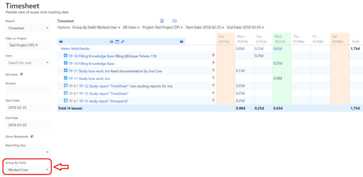 The problem is most likely that you are grouping by assignee instead of group by worked user.
