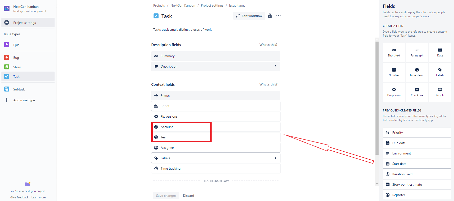 ![]() ![]() ![]() 3. The Tempo Team field (Jira custom field) can be linked to Team managed projects in Tempo Teams pages. Then go to Project Settings → Issue Types and set the Team field in the issue type. |