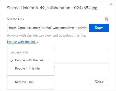 Box allows you to choose between two different access types: People with the link and People in this file: