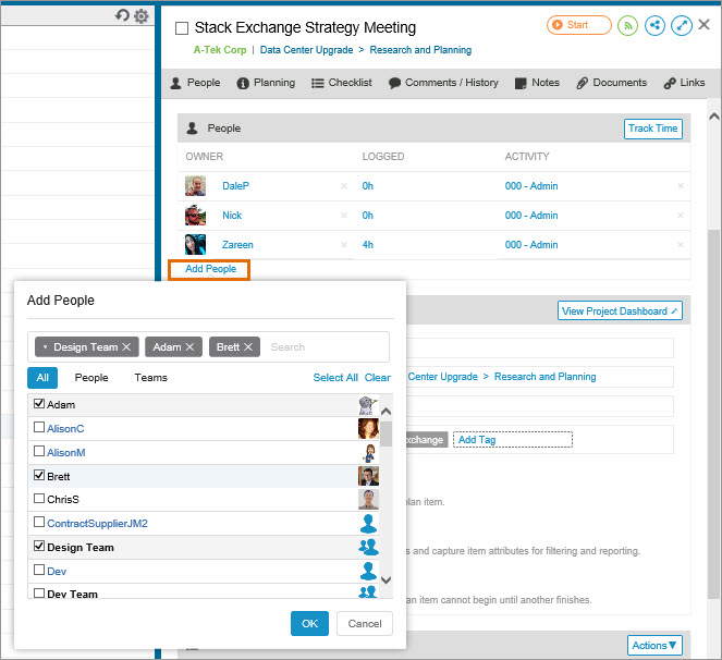 Remove participants by clicking on the ‘x’ next to their name in the Owner column.