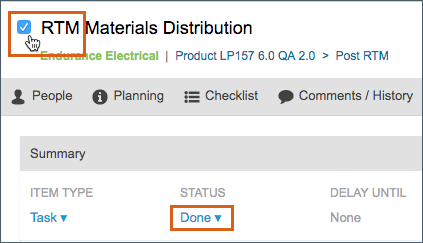 When a task is complete, mark it done by checking the Done box in the task Edit Panel: