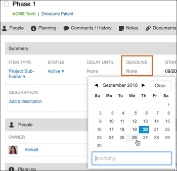You might be tracking major phases or deliverables of your projects against specific milestone dates. With LiquidPlanner, you can set a deadline date on your sub-folder to represent these key milestones.