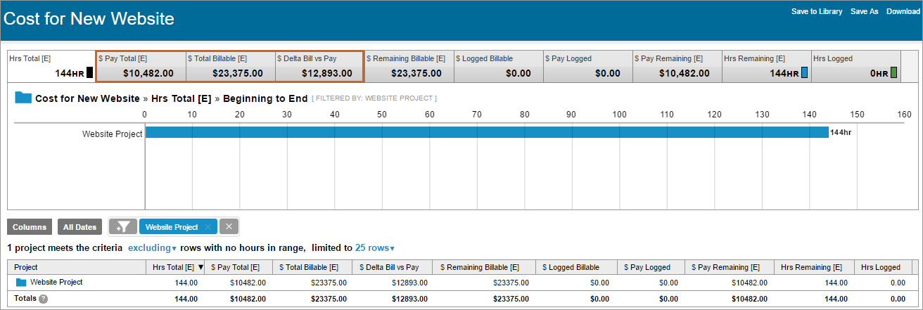 $ Total Billable [E]: Gives you the expected amount you should earn from the work done on the project