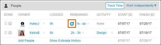 To find a Daily Limit set on a Task, open the Edit Panel > scroll to the People section. If a Daily Limit has been applied to a task owner, you will see the daily limit icon next to the Remaining Effort field. To view the Daily Limit value, click into the Remaining Effort field.