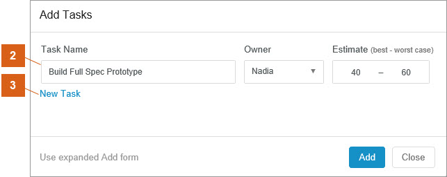To add more than one plan item at a time, click the New Task link to add a new row to the form.