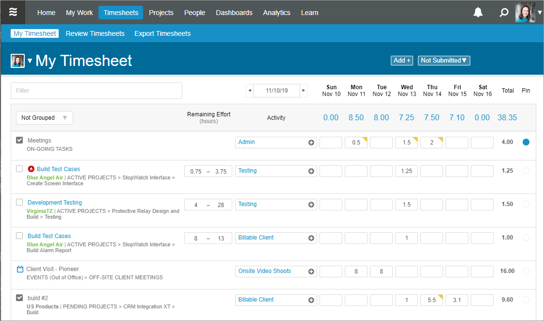 Who Uses It? Team members use the Timesheets tab daily to track time spent on their tasks, and managers also use the Timesheets tab to review timesheets.
