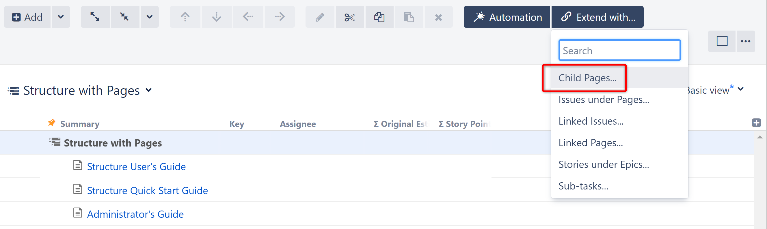 After clicking Apply, Structure will search for child pages matching your settings and add them to the structure.