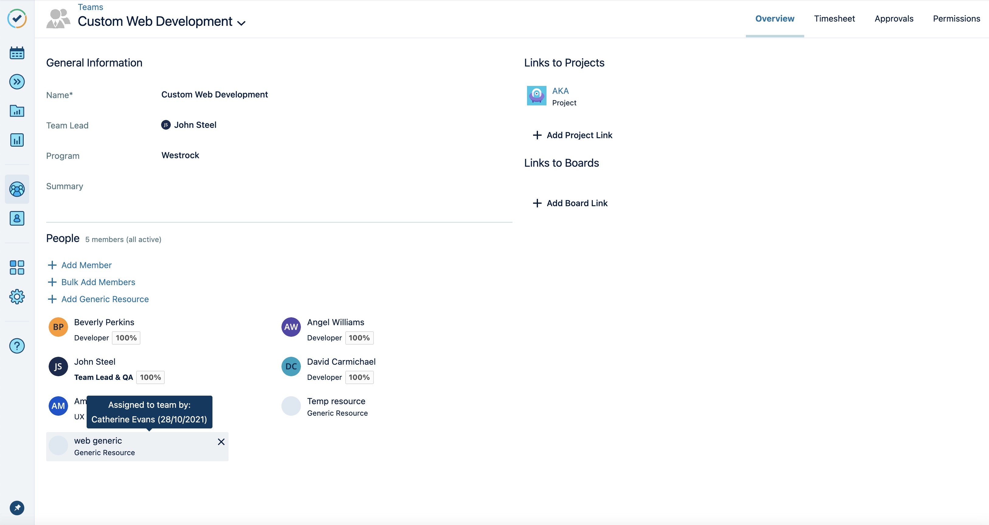 Team permissions are now applied just like team members.In the Member's list, mouse over the generic resource name. A tooltip provides information about the assignee and the date it was assigned.