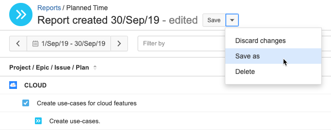 If you want to overwrite the existing report, click Save. If you want to save the edited report as a different report, click the drop-down arrow next to Save, select Save as, and enter a name for your report.
