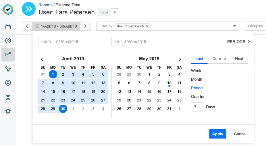 Your report is generated only after you click Apply, reducing processing time when you are working with large amounts of data.