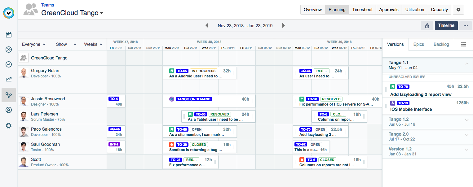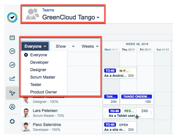 Each team must have a Team Lead who is responsible for coordinating resources, managing schedules, and approving plans for their team members. The following sections give an overview of how to use the team timeline to plan for your team and view capacity.
