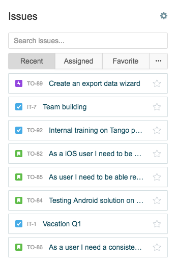 The Issues side panel is displayed on the right-hand side of view showing Jira issues from predefined JQL searches. You can drag issues from the side panel directly onto the view. The Plan Time dialog box opens where you can enter plan details. To expand the side panel, click :side_panel: at the right. You can also access the side panel on the View menu at the top right.