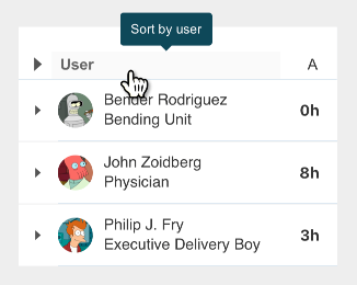 By default, the resource list is sorted by user name in alphabetical order. You can also sort your resources by availability.