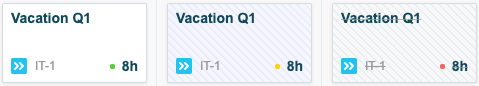 The Weeks view provides a longer-term overview of availability and is optimized for managing longer-running plans (a few days up to a few weeks). The Weeks view displays 5 weeks from the start of the current week. The view gives a high-level daily overview of resource allocation and displays fewer details on each day than the Days view. Planned time is displayed as a timeline and plans with a start or end date extending out of the displayed scope are indicated with an arrowed edge. Hover over a timeline to see how many hours are planned for the task. You can easily navigate from the Weeks view to the Days view by clicking the week you want to focus on in the schedule's header.