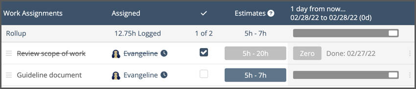 Mark Assignments done as you work through a task.
